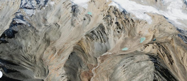गुगल इमेजमा तिलचुङको शिरक्षेत्रमा देखिएका हिमतालहरू ।