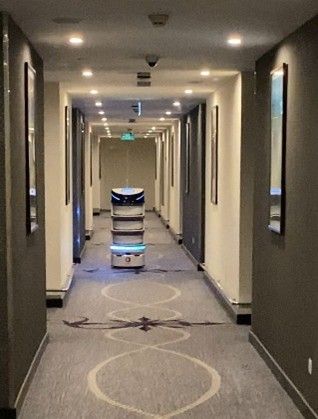 कोठामा खाना पुर्याउन जाँदै‚ प्यासेजमा रोबोट
