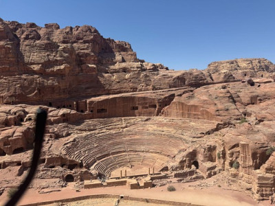 त्यसपछि हामी एम्फिथिएटर हेर्न गयौं । त्यो एम्फिथिएटर पनि संसारका अन्य रोमन एम्फिथिएटरसँग मिल्दोजुल्दो रहेछ, तर यसको विशेषता भनेको यो पूरै पहाड काटेर बनाइएको छ, ढुङ्गाभित्रै कोरिएको एक अद्भूत संरचना । झण्डै पाँच हजार मानिस बस्न सक्ने त्यो एम्फिथिएटरले त्यो बेलाको जनसंख्या र सांस्कृतिक समृद्धिको सङ्केत गर्छ । आज पनि त्यही ढुङ्गाका सिँढीमा उभिँदा पुरानो नाटक, आवाज र तालीहरूको प्रतिध्वनि सुन्ने अनुभूति हुन्छ ।