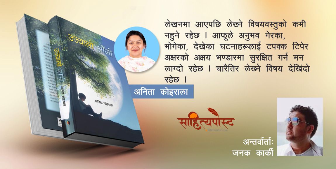 प्रस्तुत छ, कथाकार तथा लेखक अनिता कोइरालासँग उहाँको पहिलो उपन्यास `उज्यालो औंसी´ र विभिन्न विषयमा आबद्ध भई जनक कार्कीले गरेको कुराकानीको सम्पादित अंश ।
