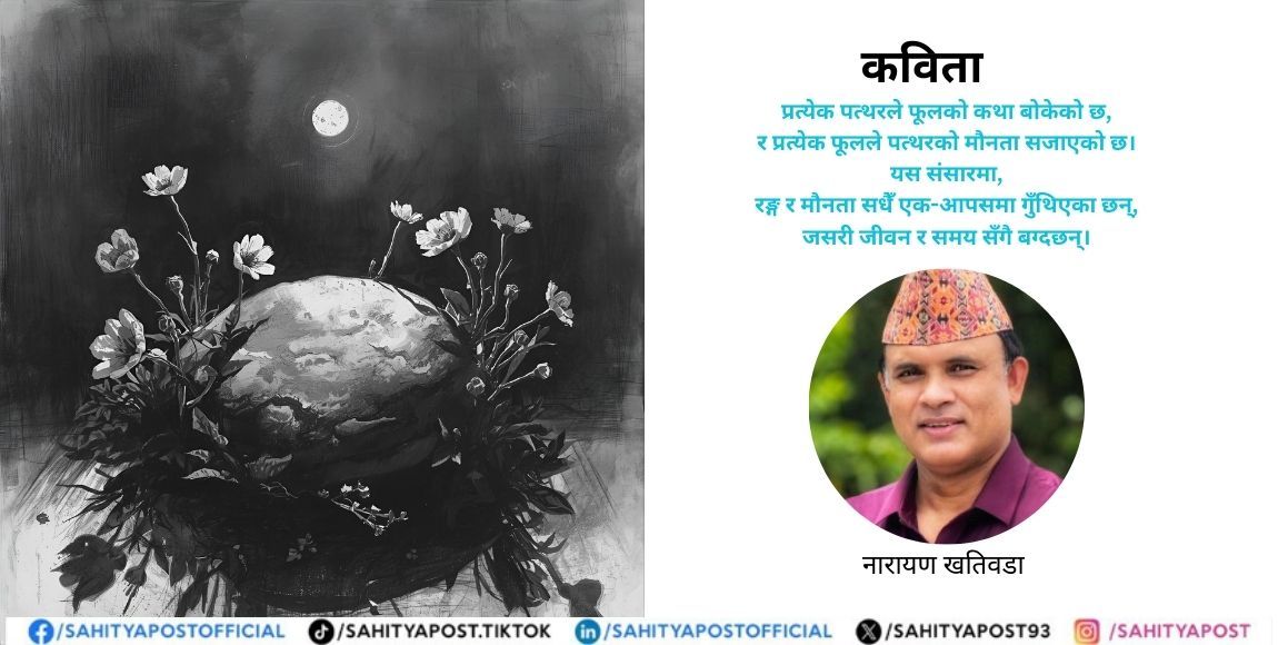 र प्रत्येक फूलले पत्थरको मौनता सजाएको छ।