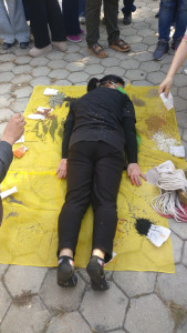 चाइनाका लि झिनेङ्गले भावनात्मक रूपमा कक्षको ठूलो भागलाई घेरेपछि आफ्नै लुगालाई टुक्रा टुक्रामा काट्दै काटिएको भागमा अनि टुक्रा कपडामा पनि आफ्नै नाम लेख्दै भुइँमा टाँसे । कैंचीले आफ्नै बुढीऔलालाई गहिरो गरी काटे अनि आफ्नै रगतले हरेक कपडाका टुक्राहरूमा थम्व प्रीन्टलाई लगाउँदै पनि गए । सबैभन्दा लामो यो पर्फमेन्स कलाले भावहरूलाई समेत भावुक बनाएको दृश्य देखिन्थ्यो ।
