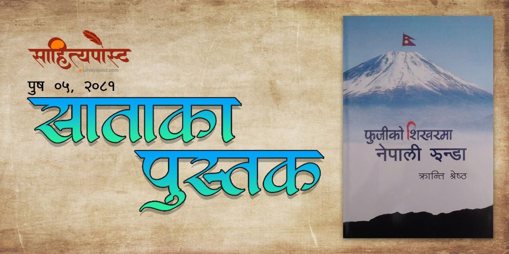 पत्रकार तथा लेखक क्रान्ति श्रेष्ठको नियात्रासङ्ग्रह हो ‘फुजीको शिखरमा नेपाली झण्डा’ । सङ्ग्रहमा शीर्ष नियात्रासहित ‘नारामा कोरिएको नेपाली अक्षर’, ‘सानो संसारभित्रको विशाल नेपाल’, ‘हाकोनेको कालो अन्डा’, ‘देशको चिनारी’, ‘नसुत्ने शहरको रमझम’, ‘झलझली आँखैमा नेपाल’, ‘डाँफे मुनाल नदेख्दा चस्किएको मन’, ‘कोरियामा पाएको नेपाली माया’, ‘नाङ्गिदाको रोमाञ्चकता’, ‘क्योतोः जहाँ म नेपाल देख्छु’, ‘नेपाली चङ्गा उडाउन सकसकाएका हातहरू’, ‘माछापुच्छ्रेबिनाको पोखरा’, ‘जोमसोमै बजारमा’ र ‘विश्वकपलाई नजिकबाट नियाल्दा’ गरी जापान तथा कोरिया यात्राका १५ संस्मरणहरू रहेका छन् ।