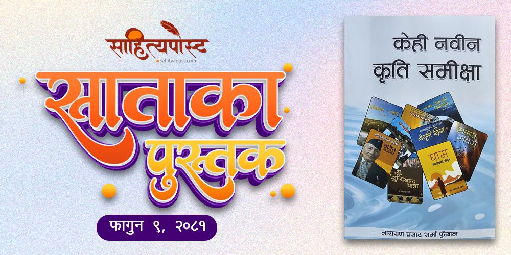 पछिल्लो समय हामीकहाँ पुस्तक प्रकाशन हुने क्रम बढ्दो छ । हरेक दिन पुस्तक प्रकाशन भइरहेका हुन्छ । सबै पुस्तक किन्न र पढ्न पाठक तथा लेखक कसैका लागि पनि सम्भव हुँदैन । यस्तो अवस्थामा आफ्नो रूचिको किताब छान्नु गाह्रो हुन जान्छ । बजारमा आएका पुस्तक बारे जान्नु आम पाठकको चासो र अधिकारभित्र पर्छ । त्यही चासो सम्बोधन साहित्यपोस्टले यो स्तम्भलाइ निरन्तरता दिइरहेको छ । यो स्तम्भको मुख्य उद्देश्य पुस्तकको सामान्य परिचय दिनु हो ता कि पाठकलाई उक्त पुस्तक किन्नुअघि नै त्यसको सार थाहा होस् । यही उद्देश्य पूर्तिका लागि हरेक साता शुक्रवार साँझ साहित्यपोस्टले बजारमा आएका नयाँ तथा केही महत्त्वपूर्ण पुराना पुस्तकको परिचय दिने गर्दछ । यही मेसोमा साहित्यपोस्टलाई यो साता निम्न ६ वटा पुस्तक प्राप्त भएका छन् ।