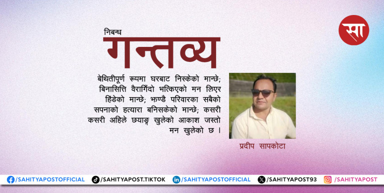 काठमाडौं । नियात्राकार प्रदीप सापकोटाको नवीनतम कृति ‘यात्राको लय’ माथि आयोजित परिचर्चा कार्यक्रममा साहित्यकारहरूबाट सराहना र सुझाव दुवैको वर्षा भएको छ ।