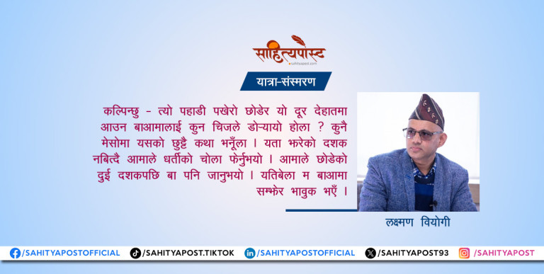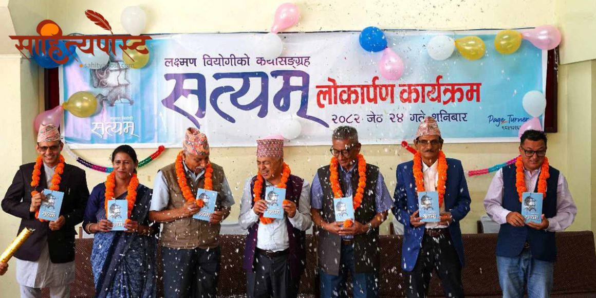 काठमाडौँ । पत्रकार लक्ष्मण वियोगीको पहिलो कथासंग्रह ‘सत्यम्’ को लोकार्पण गरिएको छ। नेपाल प्रज्ञा प्रतिष्ठानको लेखनाथ कक्षमा आयोजित एक कार्यक्रममा पुस्तकको लोकार्पण गरिएको हो। यस संग्रहमा वियोगीले १५ वटा मार्मिक कथालाई समेट्नुभएकाे छ ।