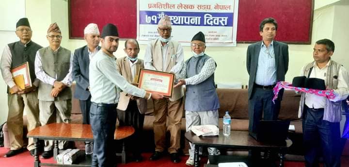 कार्यक्रममा ४ जना स्रष्टालाइ प्रलेस पुरस्कारबाट सम्मानित गरिएकाे थियाे । साे अवसरमा प्रलेस श्यामप्रसाद पुरस्कारबाट पदमप्रसाद शर्मा (दाङ), प्रलेस प्रतिभा पुरस्कारबाट रामप्रकाश पुरी (पश्चिम रुकुम), प्रलेस मित्र बालसाहित्य पुरस्कारबाट शशिकिरण रेग्मी ‘रह शर्मा’ (चितवन) र प्रलेस युवा प्रतिभा पुरस्कारबाट कवि राजेन्द्र तारकिणी (बैतडी) लाई सम्मानित गरिएको हाे ।