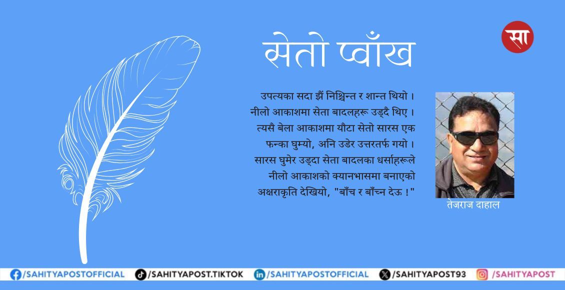पूरै पढ्नुहोस् →टाढा भीमडाँडाको टुप्पाबाट बग्दै आएको पानीलाई नियाल्छिन् । आकाश बादलले ढाकिएको छ । उनी स्मृतिको लामो लहरबाट बिउँझिन्छिन् र फेरि...