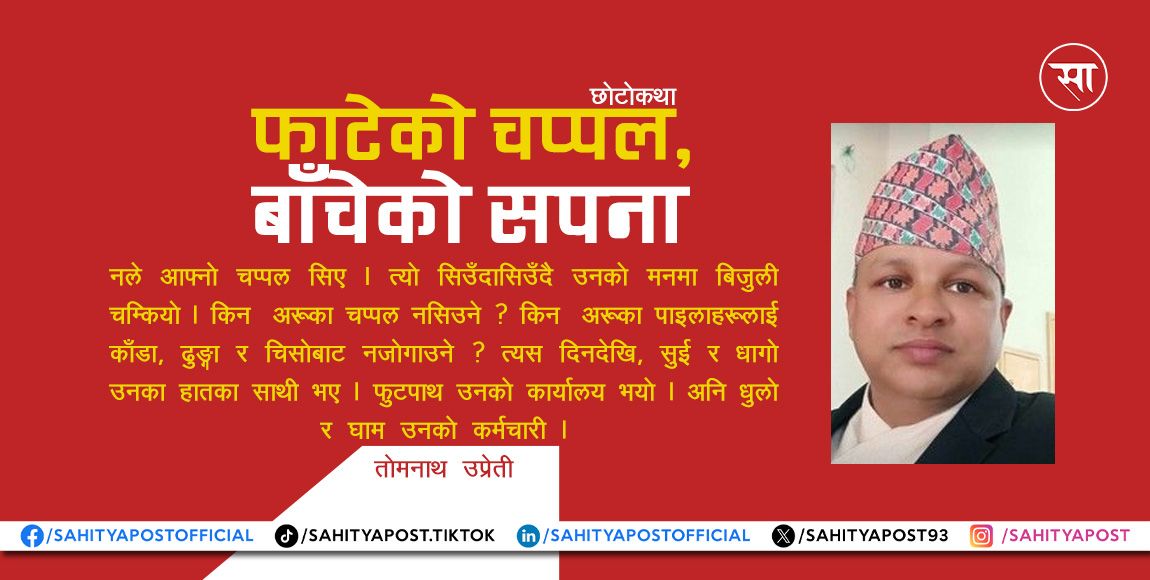 पूरै पढ्नुहोस् →नयाँ बानेश्वर संसद भवन पछाडिको सडक साँझमा महेन्द्र सधैं झैं हतारिएको थियो । मानिसहरू चप्पल कच्याककुचुक पार्दै हिँडिरहेका थिए, सडकको...