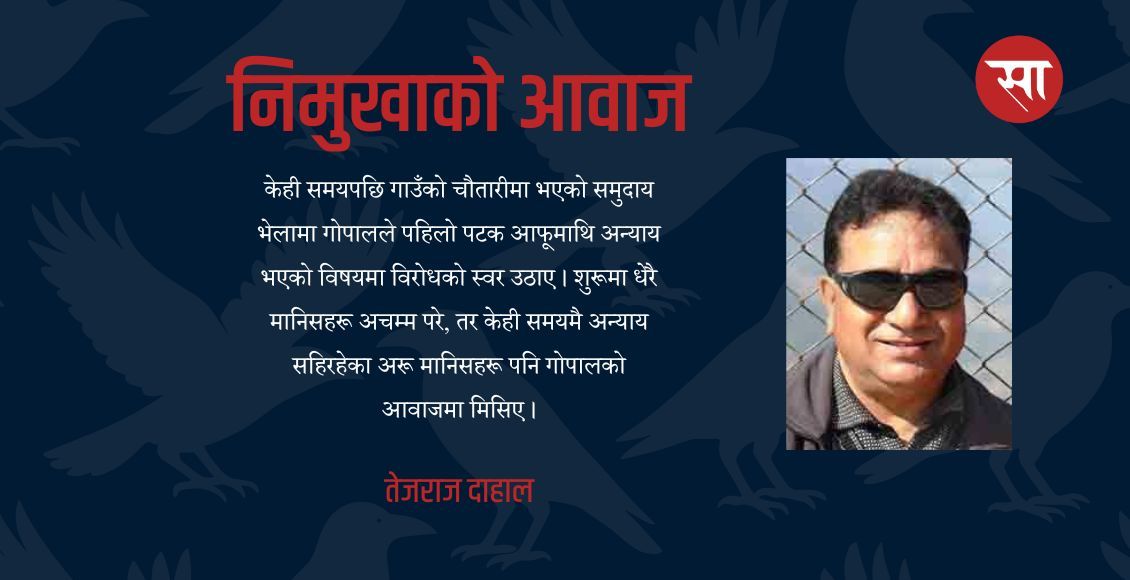 पूरै पढ्नुहोस् →बरालजी मान्छे जान्ने-सुन्ने थिए । आकाशदेखि पातालसम्मका कुरा गर्नमा खप्पिस बरालजीका कुरा सुन्दा देश, दुनियाँ, इतिहास, राजनीति, नाफा, घाटा सबै...