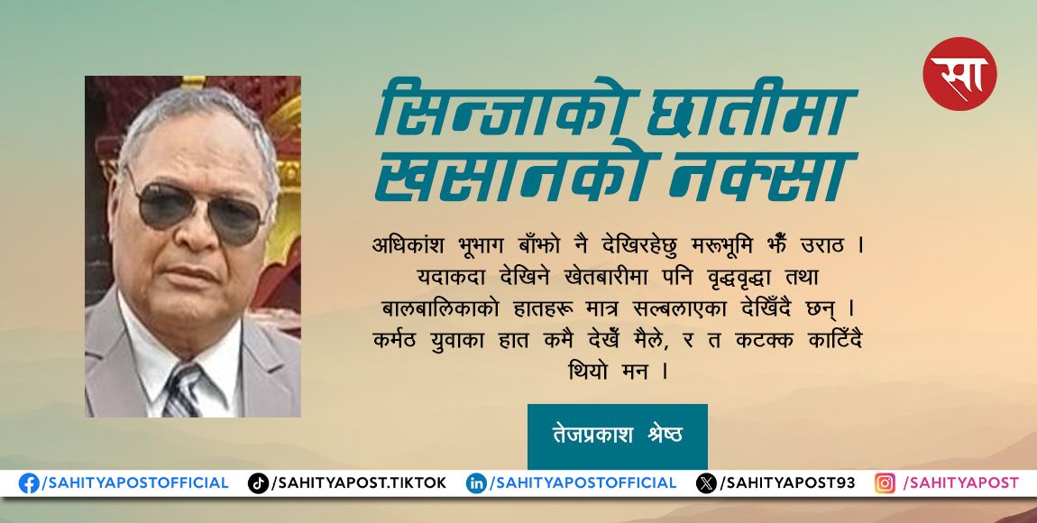 पूरै पढ्नुहोस् →जदौ ! सिन्जा ले गोधूलि साँझमा हामीलाई स्वागत बर्सायो । जदौ ! हामीले पनि नमस्कार फर्कायौँ जुम्ल्याहा हात जोडेर ।...