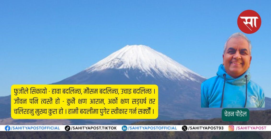 पूरै पढ्नुहोस् →भूमिका : फुजीतर्फ आकर्षित हुँदै माउन्ट फुजी जापानको आत्मा, प्रकृतिको एक महाकाव्य र यात्रुहरूको आजीवन अभिलाषा हो । जापानको कुनै...