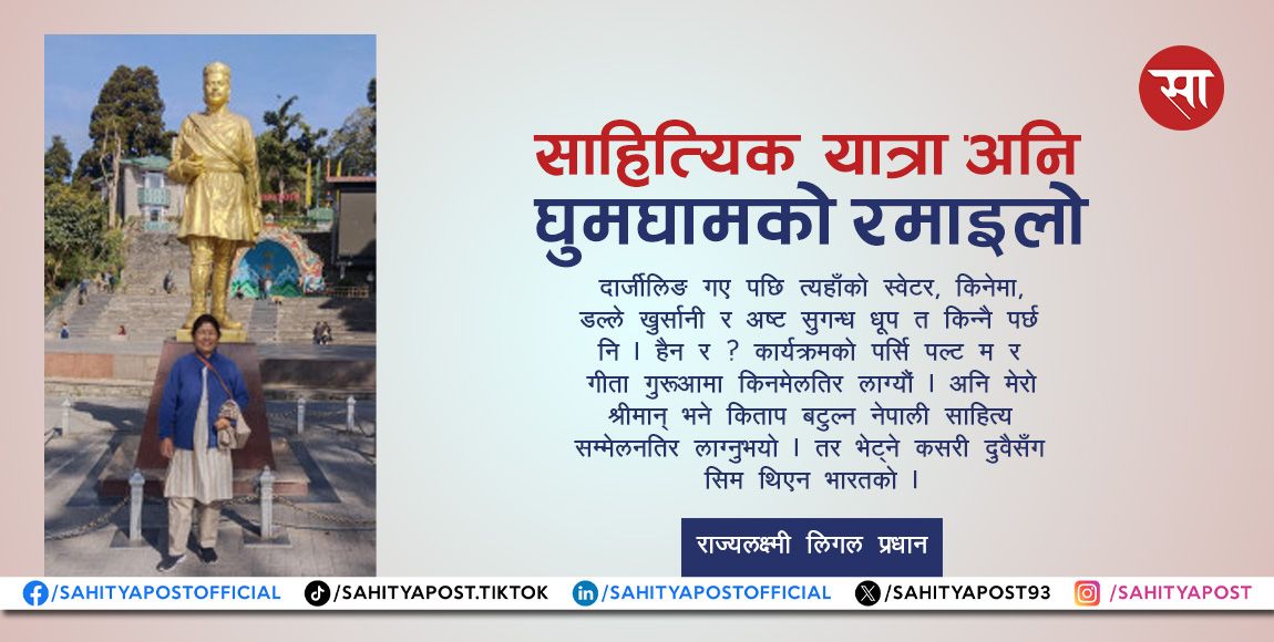 पूरै पढ्नुहोस् →यस पालि कहाँ घुम्न जाने भन्ने सोच बनाइरहेका बेला, दार्जीलिङबाट ‘वसुधाको रजत जयन्ती समारोह’मा सहभागी हुन संस्थाकी अध्यक्ष गीता छेत्रीबाट...