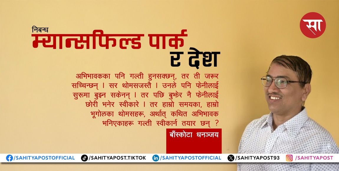 आज म बेलायती लेखिका जेन अष्टिनले २१० वर्षअघि लेखेको उपन्यासमा घोत्लिन पुगें । समय पनि कति कुहिएको कुरा मात्र कोट्याइरहन्छ...