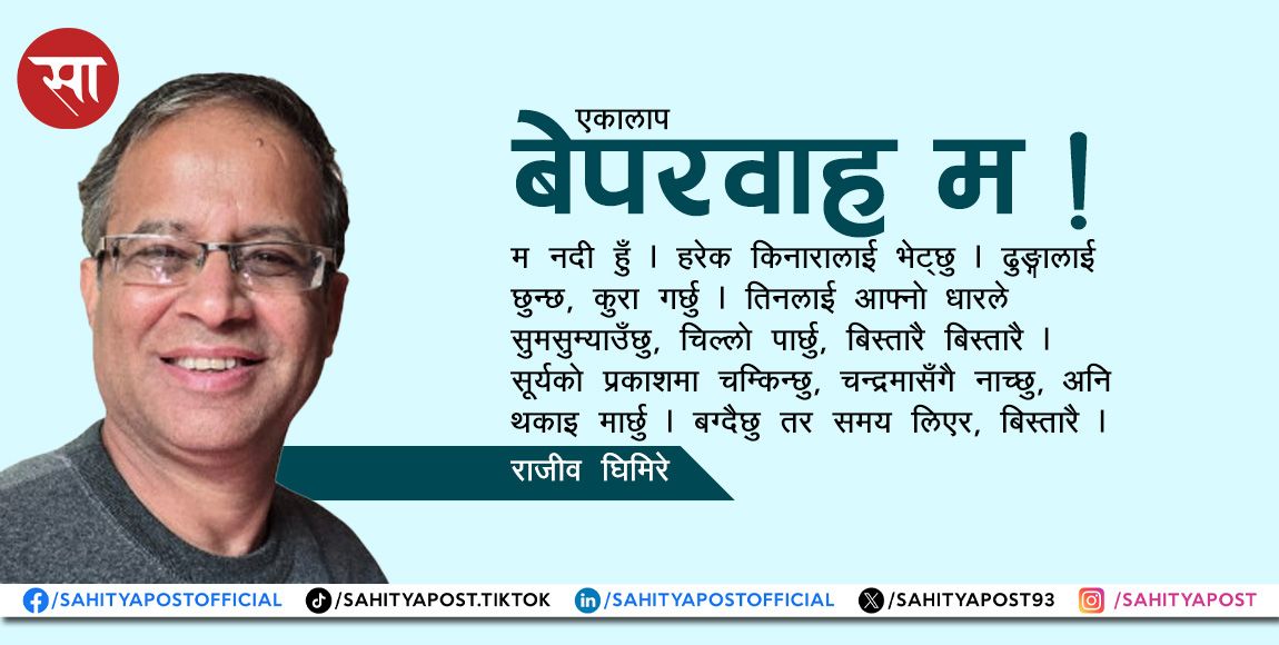 पूरै पढ्नुहोस् →अव्यग्र मेरा वरिपरिकाहरू दौडिरहेछन् । छिटो, छिटो, हतार हतार । धेरै नै ढिलो भए जस्तो, केही कुरा छुट्ला जस्तो ।...