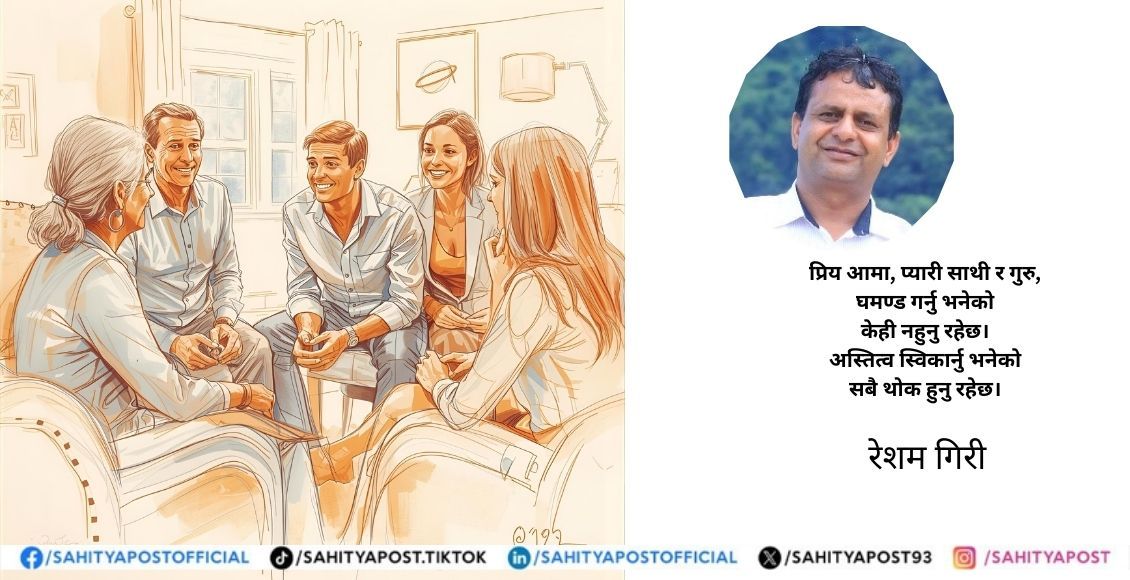 पूरै पढ्नुहोस् →आमा, मैले धन, पद र सौन्दर्यमा मात्रै घमण्ड नगरेको भए आजभन्दा धेरै अगाडि आफूमा भएको अज्ञानलाई ज्ञान सम्झेर तिमीलाई तिरस्कार...