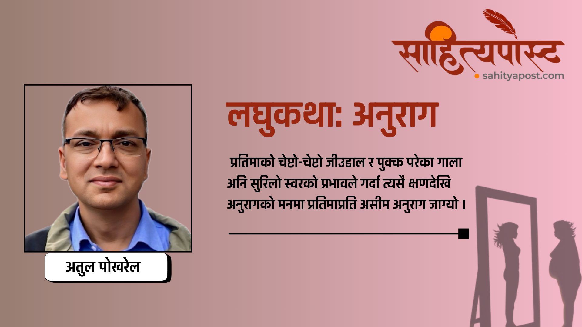 पूरै पढ्नुहोस् →कलेजको कार्यक्रममा प्रतिमा गीत गाउँदै थिइन् । श्रोताको समूहमा उनकै सहपाठी अनुराग मंत्रमुग्ध भएर हेरिरहेको थियो । प्रतिमाको चेप्टो-चेप्टो जीउडाल...