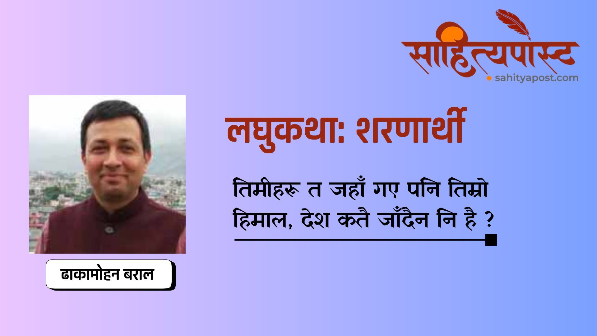 पूरै पढ्नुहोस् →ती लेखिकाले सोध्नुभयो, “तपाईंको कथा पढें पत्रिकामा । छोटो, मीठो र मन छुने थियो तर अझै पढिरहन मन लाग्दै गर्दा...