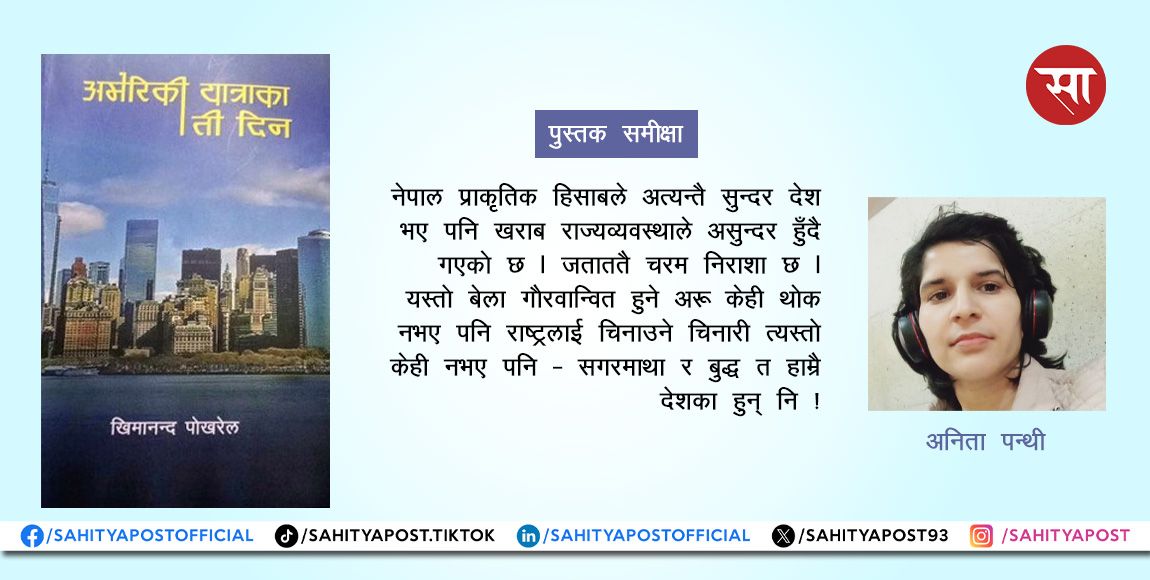 पूरै पढ्नुहोस् →अनायोजिता – अनिता पन्थी लेखक अनिता पन्थीको उपन्यास हो ‘अनायोजिता’ । अनिता पन्थीले विचार, तर्क, कल्पनालाई व्यापक प्रयोग गरेर सुन्दर...