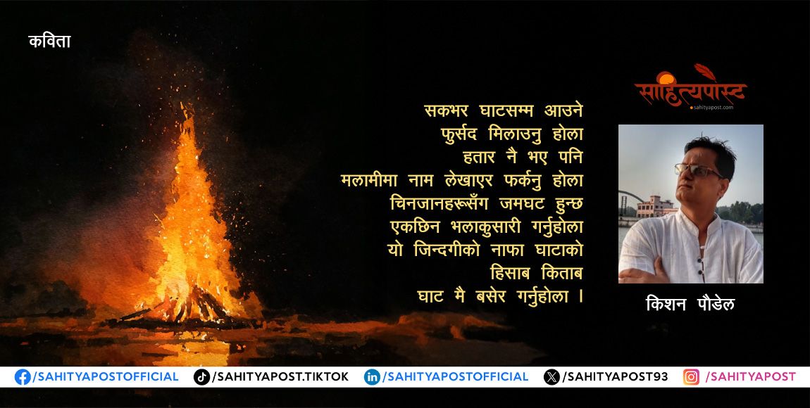 पूरै पढ्नुहोस् →धनबहादुर दाइ पानी घट्टको घटेरो उसको सूर्य घट्टमा नै उदाउँछ र घट्टमा नै अस्ताउँछ एक भारी सपनाहरू सोलीमा हालेर मकैसँगै...