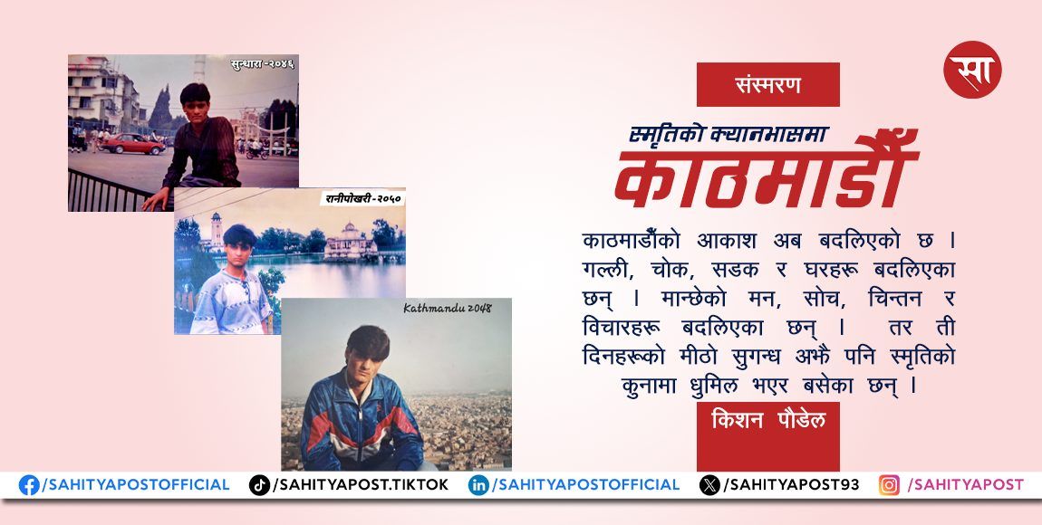 पूरै पढ्नुहोस् →भानुभक्तको कान्तिपुर नगरी कुनै परिकथाको तिलस्मी शहरझैँ मेरो बालसुलभ मस्तिष्कमा एक अद्भुत चित्र बनेर बसेको थियो । झिलिमिली शहर हेर्ने...