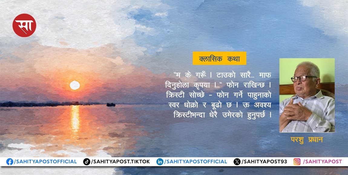 पूरै पढ्नुहोस् →१ “बाबु !” “ओ देवता बाबु !” “सुन्नु भएन ?” अखबारका पङ्क्तिबाट आँखा हटाएर मैले आगन्तुकपट्टि हेरेँ । उसका हातमा एउटा...