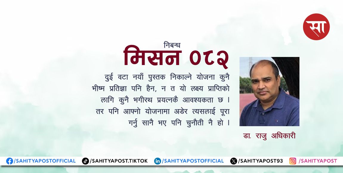 पूरै पढ्नुहोस् →नेपाली नयाँ वर्षमा एक जना साथीले आफ्नो सामाजिक सञ्जालमा आफूले २०८२ भित्रमा चार वटा पुस्तक पढ्ने लक्ष्य लिएको कुरा गर्व...