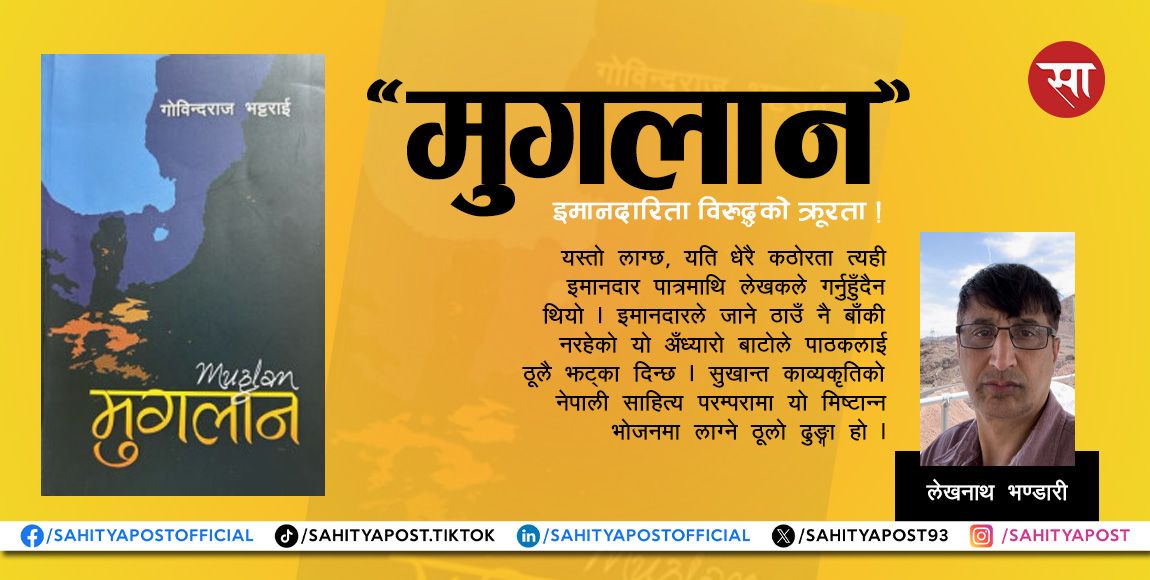 पूरै पढ्नुहोस् →मानिसको जीवनमा कथाहरू धेरै हुन्छन् । कतिपय लेखिन्छन् भने कतिपय लेखिन नपाई बिलाउँछन् । भोगिएका सबै कथाले जीवन्तता पाउँदैनन् ।...