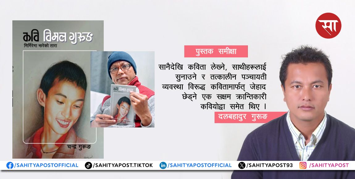 पूरै पढ्नुहोस् →कवि विमल गुरुङकाे सम्झनामा लेखिएकाे जीवनकथा पढेपछि धेरै बेर भावुक भएँ । १८० पृष्ठकाे सानाे तर गहन पुस्तक पढेपछि मनमा...