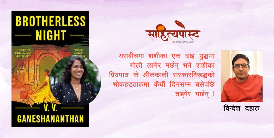 नेपालमा पनि दश वर्षे सशस्त्र द्वन्द्वका क्रममा कैयौं निर्दोष सर्वसाधारणले जघन्य मानवअधिकार उल्लंघनको शिकार हुनुपरेको थियो । युद्धका कतिपय दुर्दान्त घटनाहरूको अझै पनि अभिलेखीकरण हुन सकेको छैन भने दस्तावेजीकरण गरिएका घटनाहरूको अध्ययन गर्दा आङ सिरिंग हुन्छ । त्यसैले नेपाली पाठकहरूका लागि ब्रदरलेस नाइटको पठन आफ्नै परिवेशको कथा जस्तै लाग्न सक्छ । युद्धको विभीषिकालाई सशक्त शैलीका लागि साथ कसरी प्रस्तुत गर्ने भनी गणेशनाथनले नेपाली आख्यानकारहरूका लागि उदाहरण प्रस्तुत गरेकी छन् ।