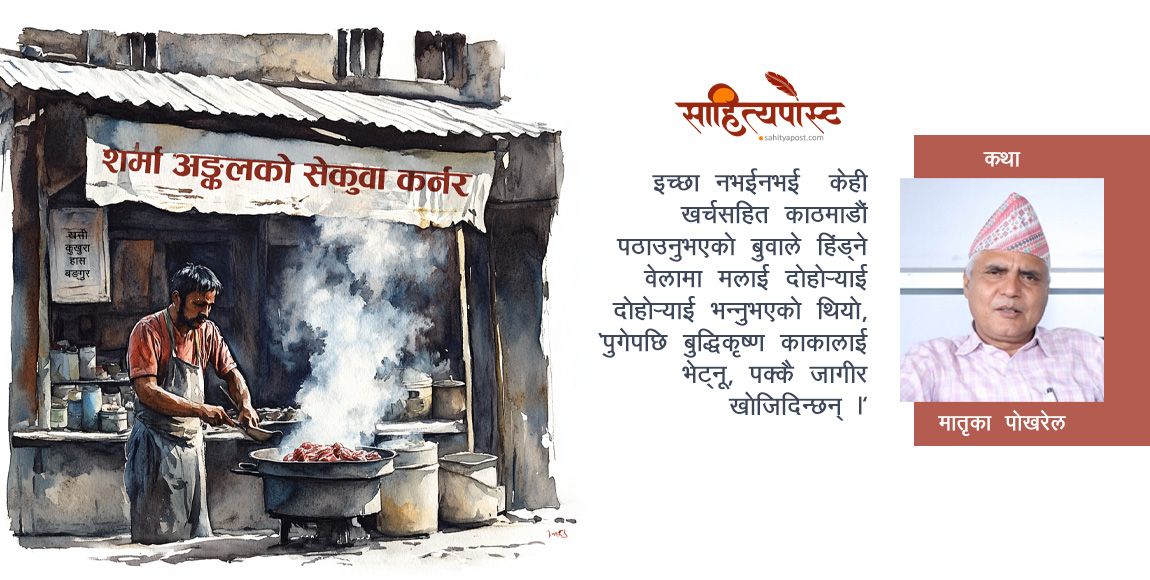 ‘काकाले जागीर खोजिदिनु भयो भने मात्र म आफ्नो पढाइ अघि बढाउन सक्छु ।’ बुवाले पठाउनुभएको चिट्ठी दिएपछि आफ्नो बाध्यता उहाँसँग राखें ।