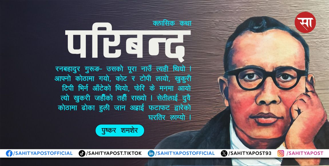रनबहादुर गुरुङ– उसको पूरा नाउँ त्यही थियो । आफ्नो कोठामा गयो, कोट र टोपी लायो, खुकुरी टिपी भिर्न आँटेको थियो, फेरि के मनमा आयो त्यो खुकरी जहीँको तहीँ राख्यो । सेतीलाई दुवै कोठामा ढोका हुली जान अह्राई फटाफट द्वारेको घरतिर लाग्यो ।